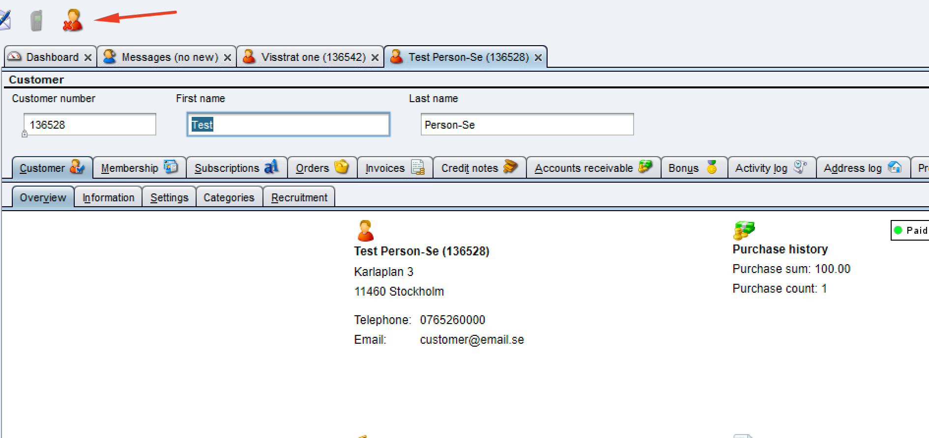 Find the given customer by using the searchbar on the left side of the screen, and open it.