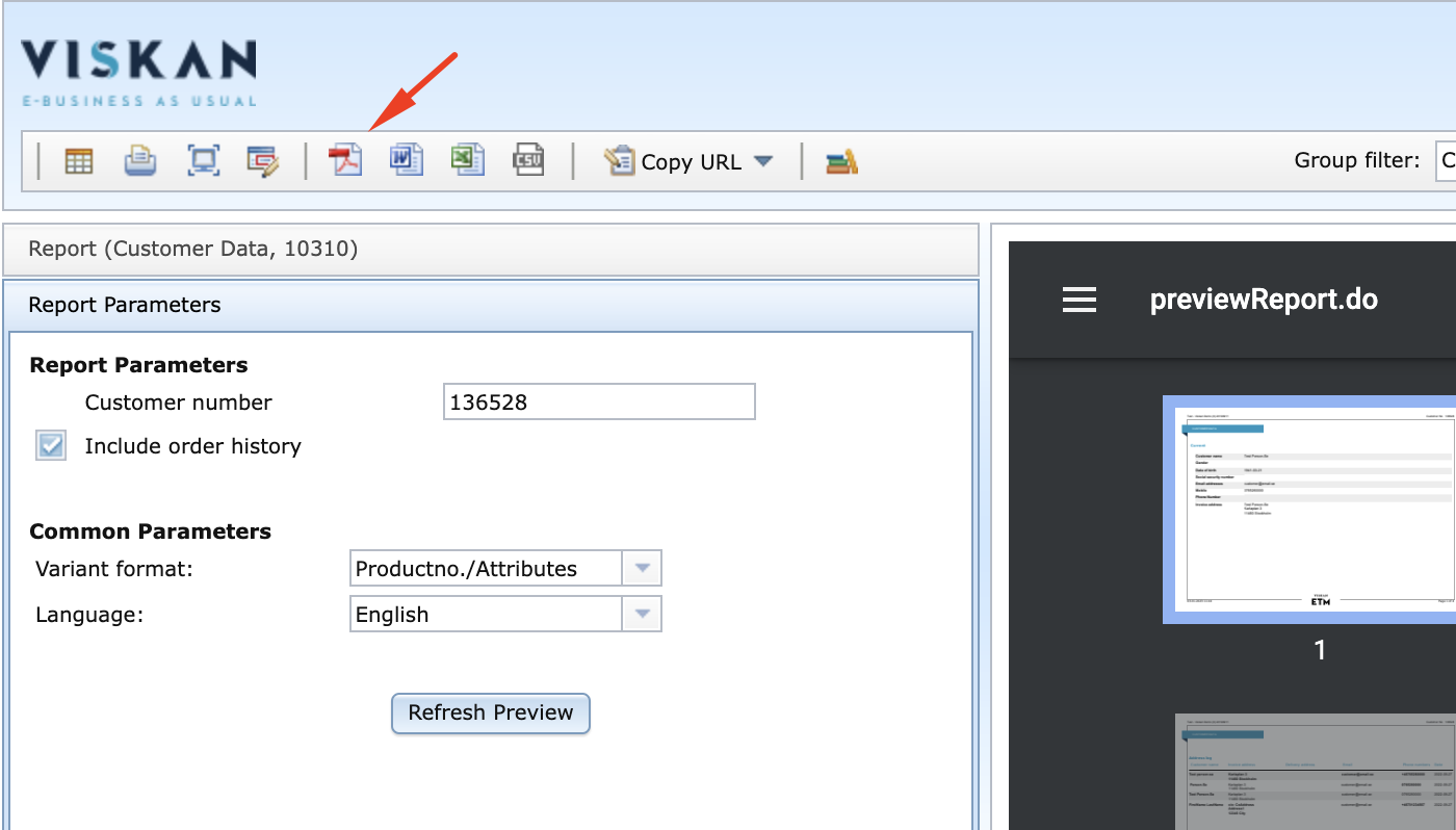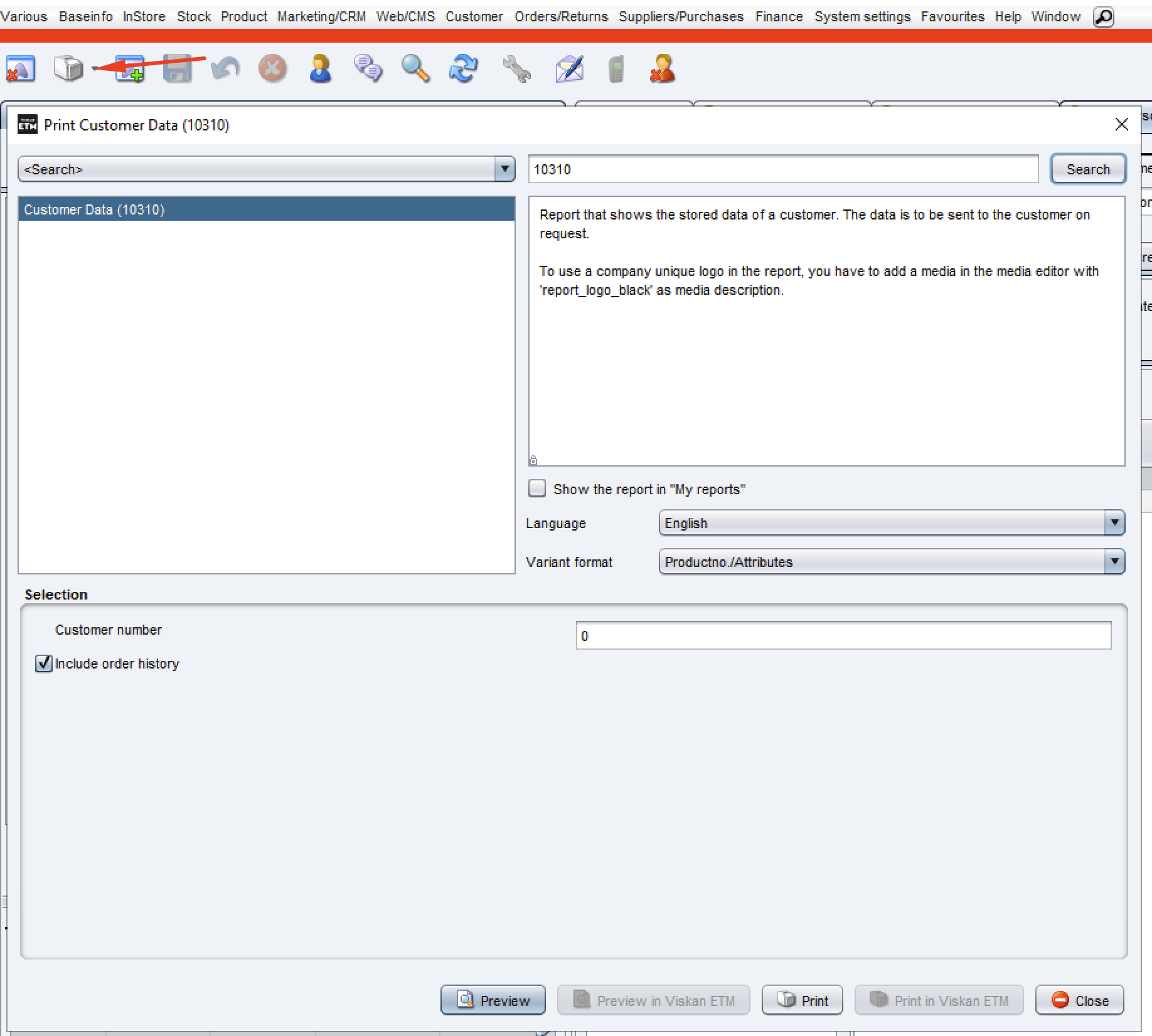 To make this process as easy as possible we have created the report "10310 Customer Data" that contains all customer data stored in ETM.