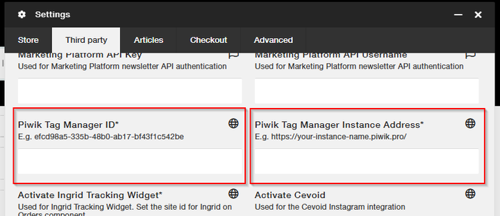 Enter Piwik Tag Manager ID and Piwik Tag Manager Instance Address. Both are global (for all languages).