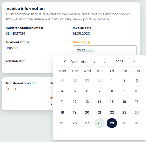 When you choose a delivery you can access more details of that particular delivery and, for example, change the due date. After changing the date push "Save" at the bottom of the page.