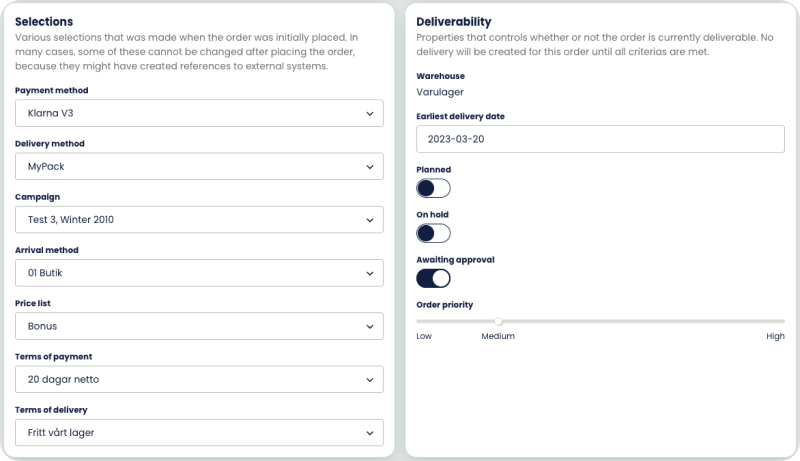 You can add text to the delivery note or create a custom parcel label text if you so wish. The “Customer’s order number” row is an optional reference to this order that the customer has. For example, purchase order in your own system or order number that was imported from an external system.