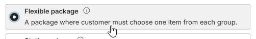 The Flexible package solves this by allowing you to curate the structure of the bundle while giving the customer the freedom to choose their preferred variations within it. Instead of a rigid set of items, you provide options, allowing the customer to personalize the package to their taste.