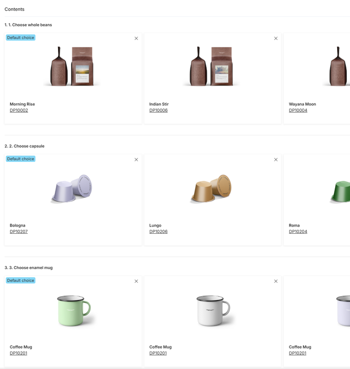 Offering bundles is a powerful strategy to increase the average order value. In the PIM, you can achieve this in different ways depending on how much freedom you want to give the customer.