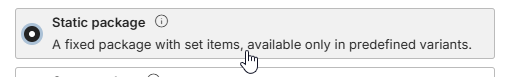 - Select Static package from the list of product types.