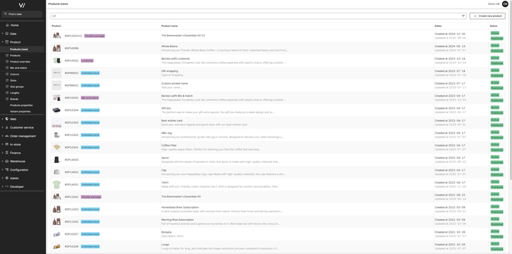 This view shows all products available in your Backoffice environment. Here you can: