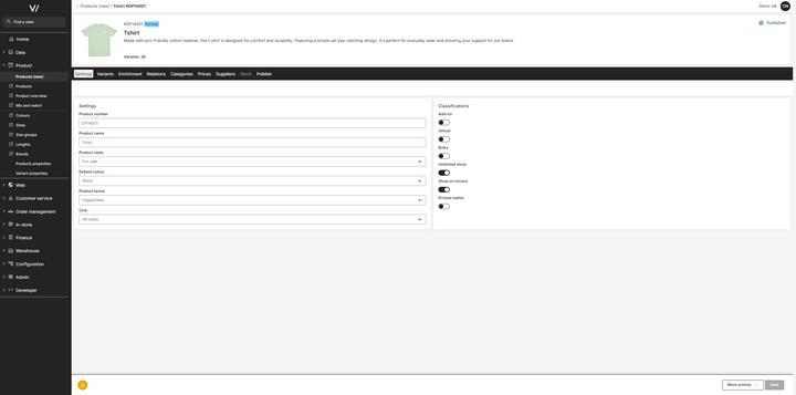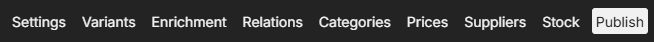 The Publish tab acts as the final control switch for your product's presence on the webstore. While other tabs manage data, prices, and stock, this view determines whether the product is actually live and viewable by customers. It separates the general product activation from specific variant availability, giving you flexibility in how you launch products.