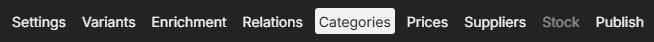 The Categories tab is the control center for where your product appears in the webstore hierarchy. Here, you connect the product to specific nodes in the category tree (e.g., Men > T-shirts), ensuring customers can find it in the correct locations on the site.