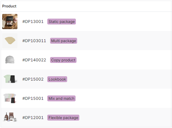 You can also use the filters in the list view to search specifically for these types. For example, if you only want to review your bundles, you can filter the list to show only Flexible packages or Lookbooks.
