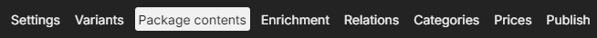 When working with any of the package types (Mix & Match, Lookbook, Flexible, Static, etc.), a dedicated tab called Package contents will appear in the Product View.