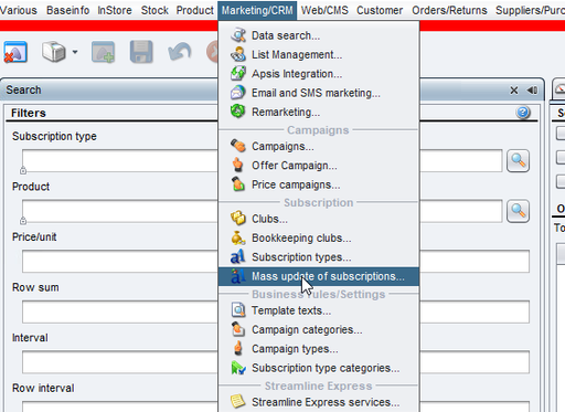 With Massupdate function you can change intervals, prices or even content of a subscription for multiple customers at once.