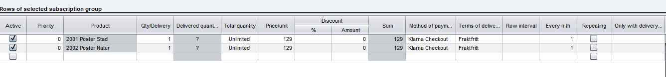 When you've chosen a row in Overview, you're able to change the values in "Rows of selected subscription group" view.